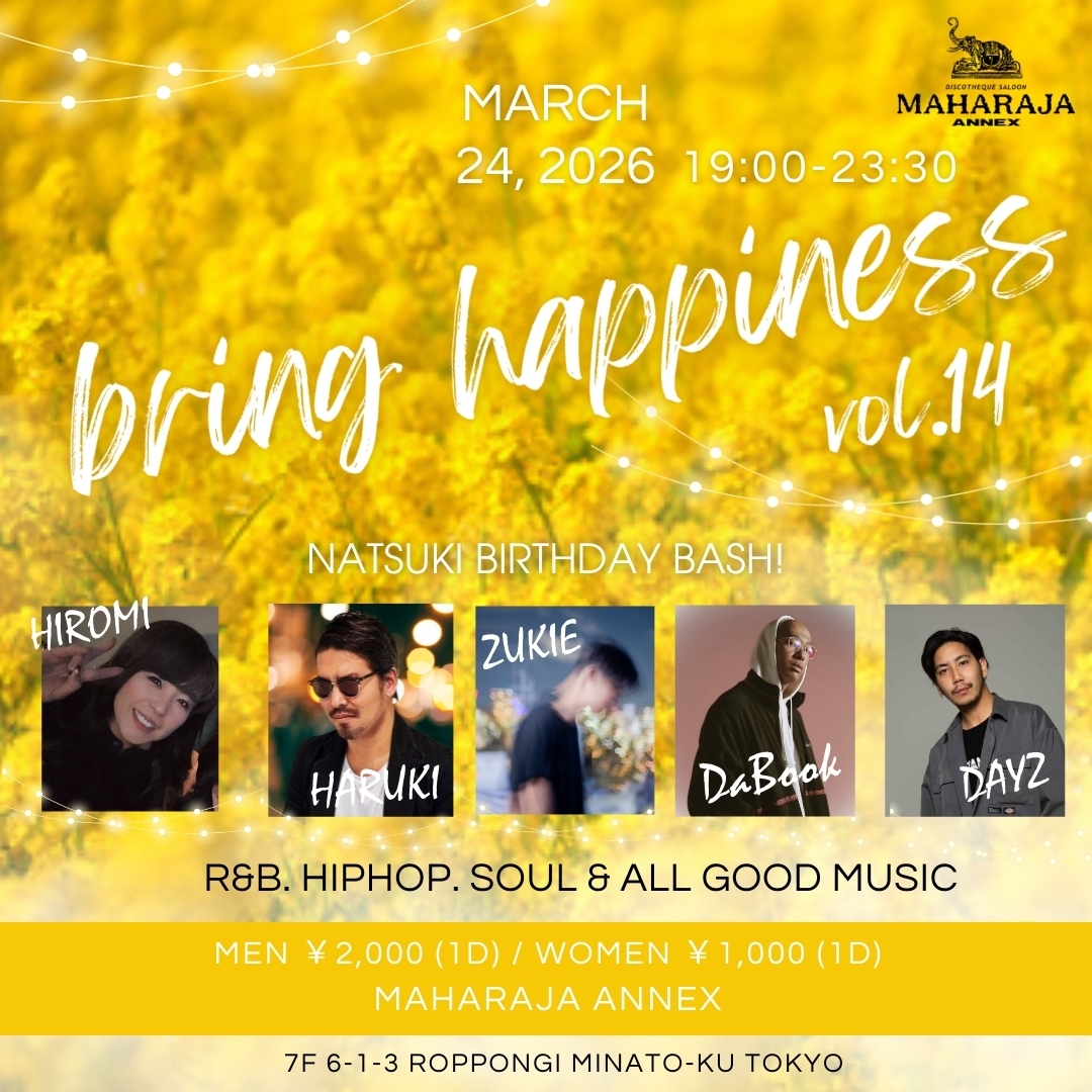 Home EVENT bring happiness Date 2月 24 2026 Time 19:00 - 23:30 bring happiness Share this event + Add to Google Calendar + iCal / Outlook export 00 days 00 hours 00 minutes 00 seconds