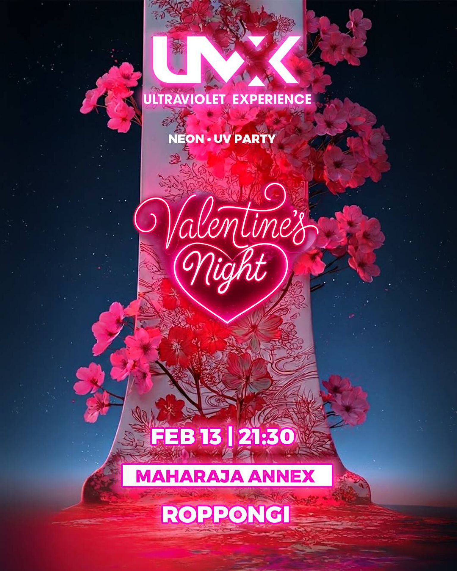 Home EVENT UVX VALENTINE NEON PARTY Date 2月 13 2026 Time 21:30 UVX VALENTINE NEON PARTY Share this event + Add to Google Calendar + iCal / Outlook export 00 days 00 hours 00 minutes 00 seconds