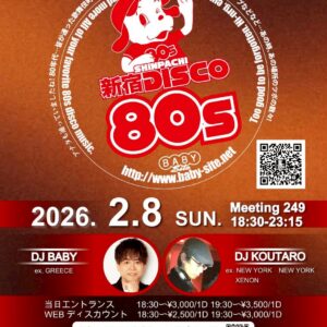 新宿DISCO 80’s 18:30-23:15 ENTRANCE CHARGE 18:30~¥3,000(1Drink)/19:30~3,500(1Drink) ... 08 2月 18:30 - 23:15